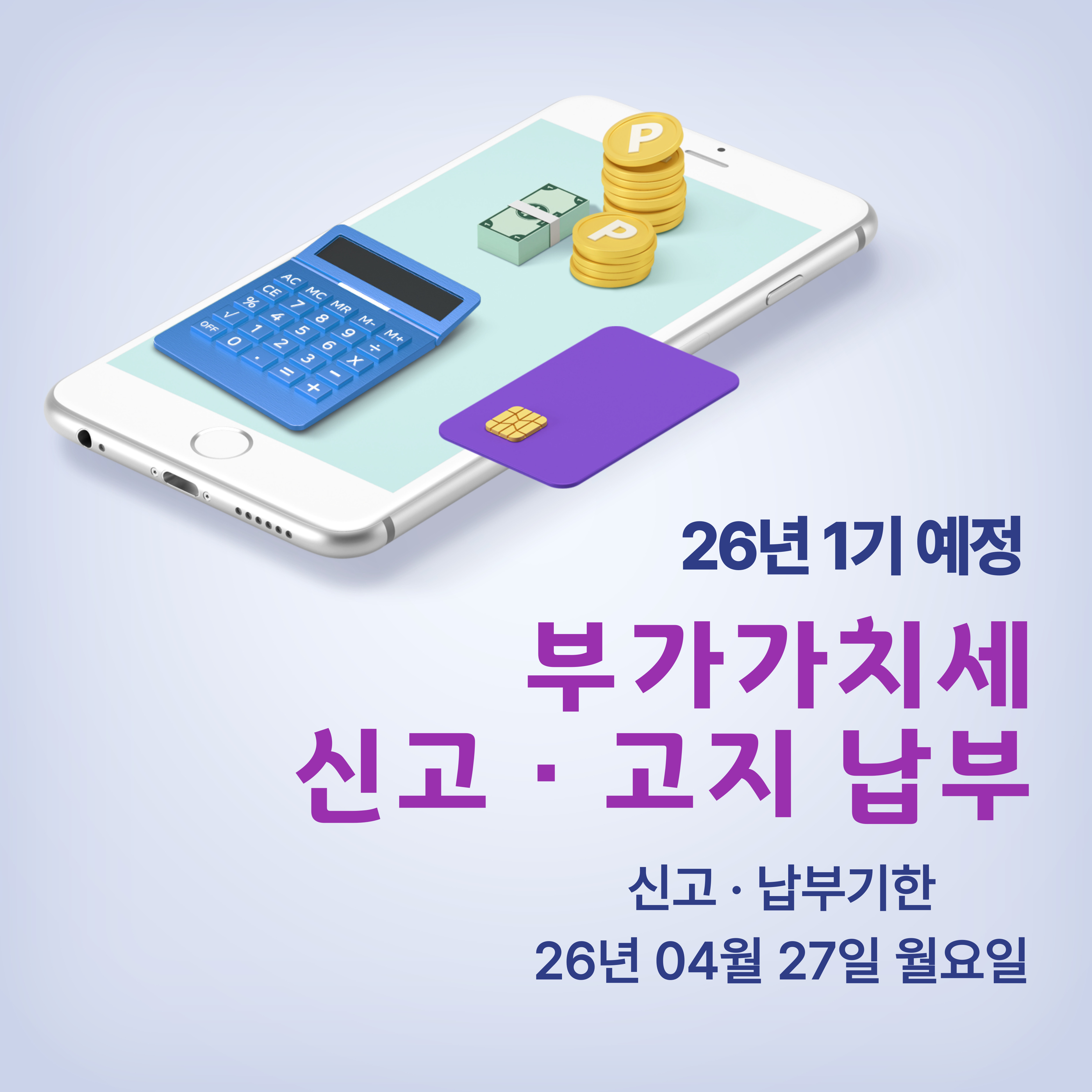 구분 부가세 예정고지 부가세 예정신고 핵심 개념 세무서에서 계산한 금액을 납부만 함 사업자가 직접 실적을 계산해 신고 및 납부 대상자 개인 일반과세자, 소규모 법인사업자 법인사업자, 조기환급 희망자 등 계산 방식 직전 과세기간 납부세액의 50% 2026년 1월~3월 실제 매출/매입 실적 신고 의무 없음 (고지서 납부로 종료) 있음 (홈택스 등을 통해 신고서 제출) 2026년 기한 2026년 4월 27일(월) 2026년 4월 27일(월)